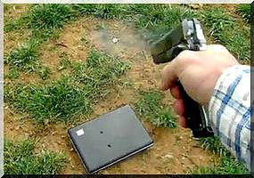 "Ca c'est ton ordinateur portable", dit-il, "ça, là, c'est mon calibre .45" (11,43 mm). Et il commence à tirer sur l'appareil, qu'il venait de réparer. "Il faut aussi que tu me les rembourses (les balles)", dit-il, "parce qu'elles coûtent chacune à peu près un dollar". "Tu pourras avoir un nouveau portable quand tu te l'achèteras", ajoute-t-il, avant de conclure: "J'espère que tu as aimé ton petit fiasco sur Facebook". (belga)